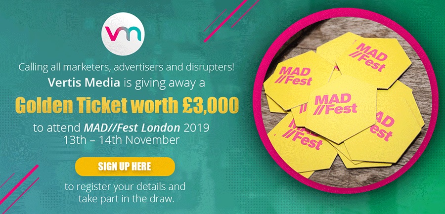 Vertis Media is hosting a Golden Ticket give-away for MAD//Fest London 2019, the most exciting adtech, martech & tech disruption festival in the world.